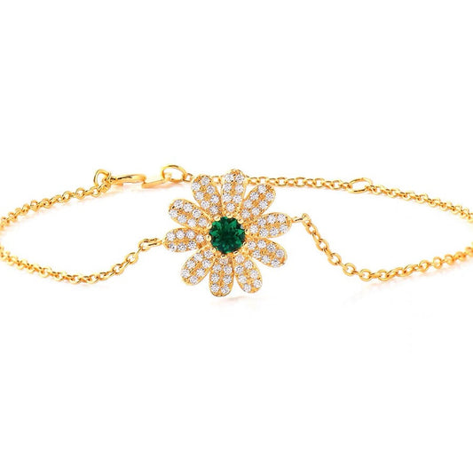 Lab Grown Emerald Bracelet Sunflower Sterling Silver Plated Yellow Gold (0.25ct)