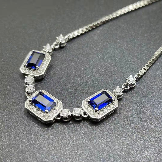 Lab Grown Sapphire Bracelet Emerald Cut Shape Classic Style Sterling Silver 925 Plated Platinum