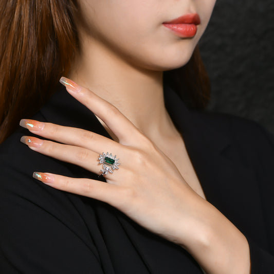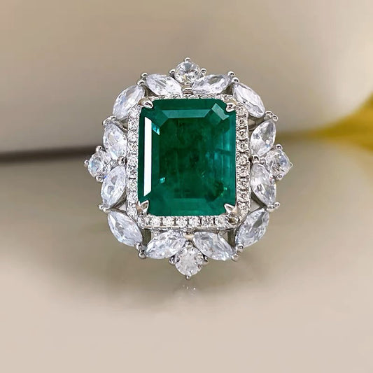 Lab Grown Emerald: 7.0 Carat Emerald Ring | S925 Plated White Gold