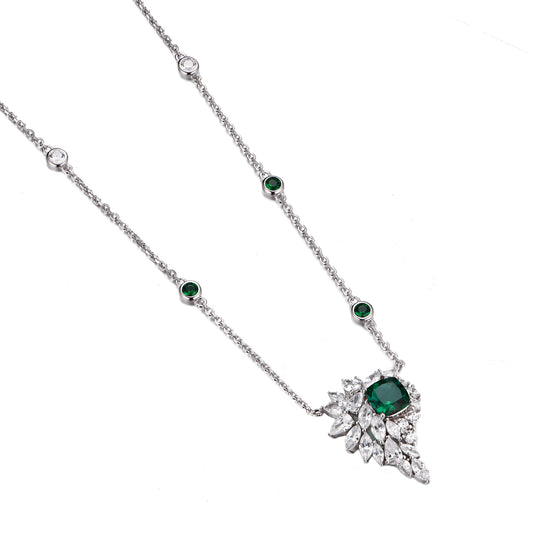 Lab Grown Emerald: 4.3 Carat Emerald Necklace | S925 Plated White Gold