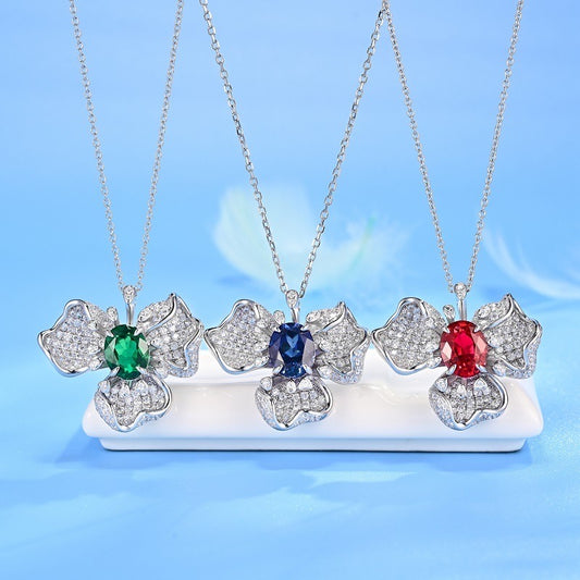 Lab Grown Emerald: 100 Carat Emerald Necklace | S925 Plated White Gold