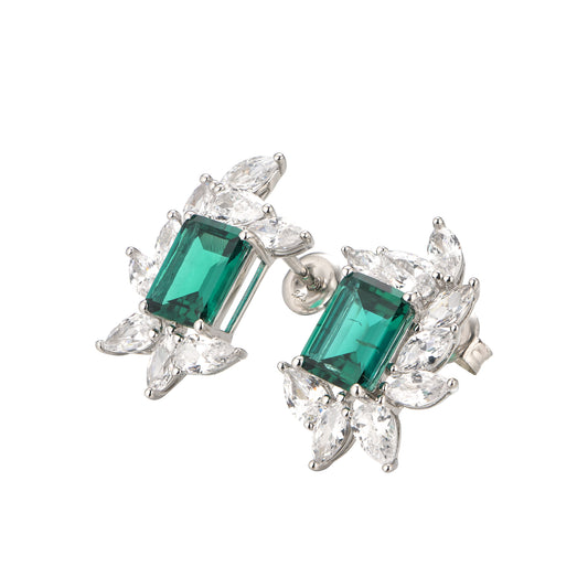 Lab Grown Emerald: 1.3 Carat Emerald Earring | S925 Plated White Gold