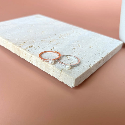 Pearl Ring | 925 Sterling Silver Plating Rose Gold Petite Delicate Zircon Solitaire Pearl Ring