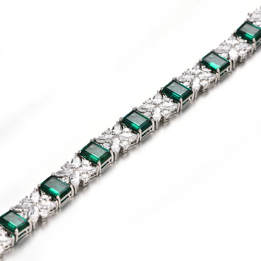 Lab Grown Emerald: 13 Carat Emerald Bracelet | S925 Plated White Gold