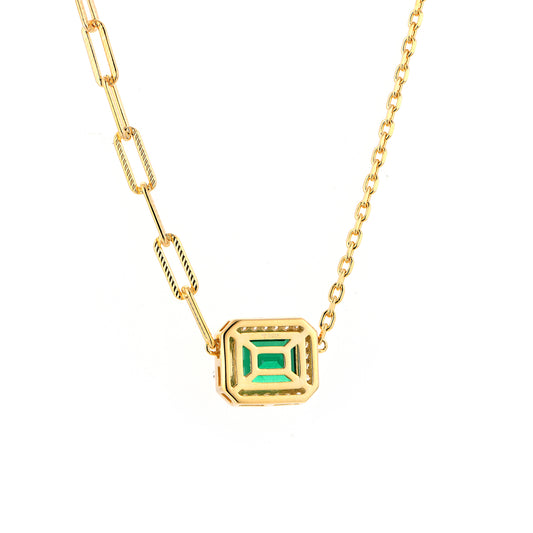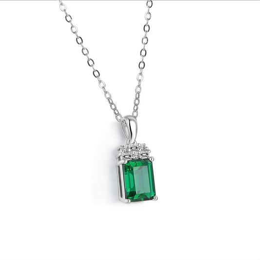 Lab Grown Emerald: 0.7 Carat Emerald Necklace | S925 Plated White Gold