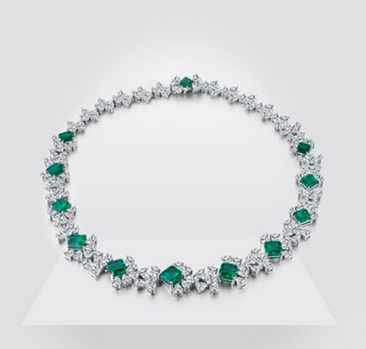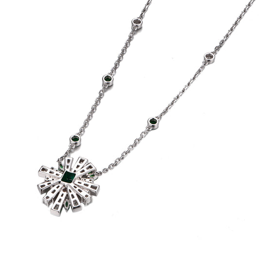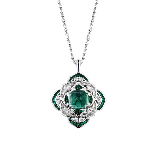 Lab Grown Emerald: 100 Carat Emerald Necklace | S925 Plated White Gold