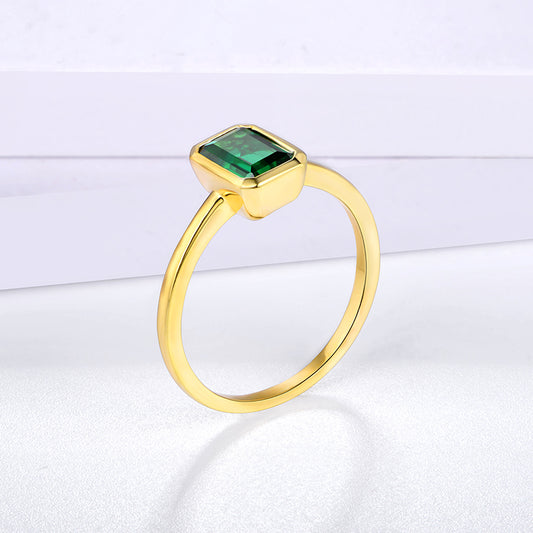 Lab Grown Emerald: 0.7 Carat Emerald Ring | S925 Plated Yellow Gold