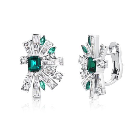 Lab Grown Emerald: 1.3 Carat Emerald Earring | S925 Plated White Gold