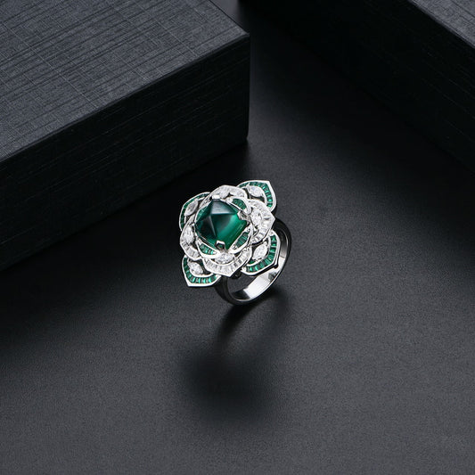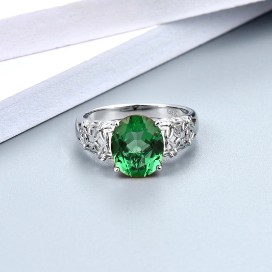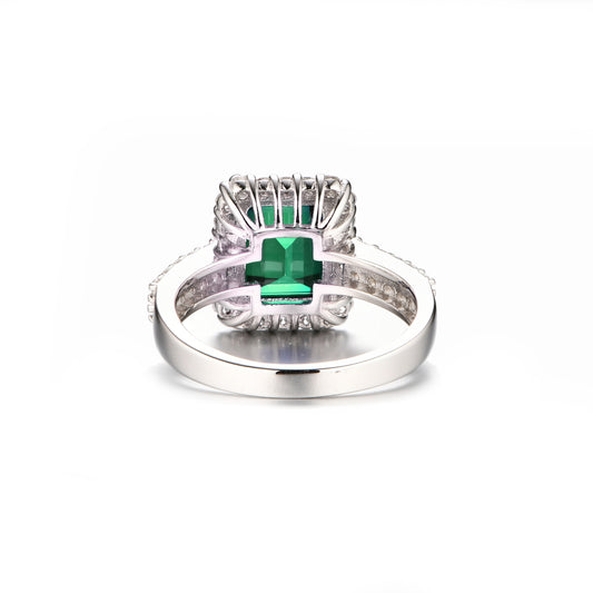 Lab Grown Emerald: 7.0 Carat Emerald Ring | S925 Plated White Gold