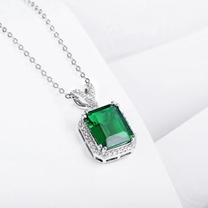 Lab Grown Emerald: 4.3 Carat Emerald Necklace | S925 Plated White Gold