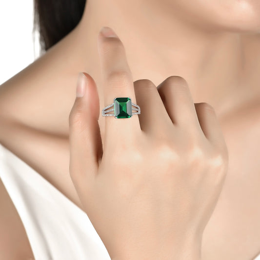 Lab Grown Emerald: 4.5 Carat Emerald Ring | S925 Plated White Gold