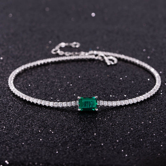 Lab Grown Emerald: 0.9 Carat Emerald Bracelet | S925 Plated White Gold