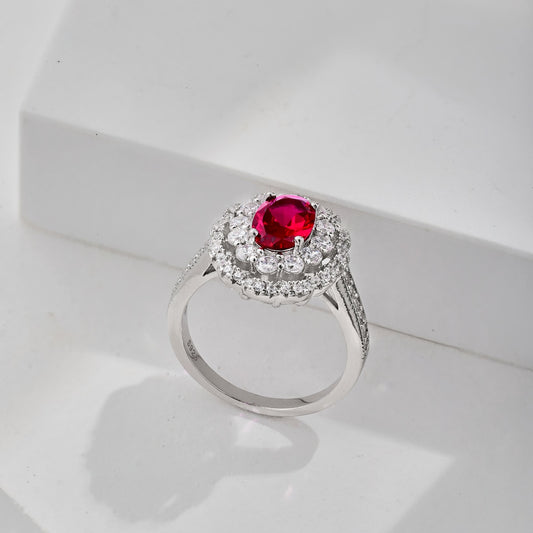 1.5 CT Ring 5A Cubic Zirconia | 925 Sterling Silver | Ruby Color | 0149