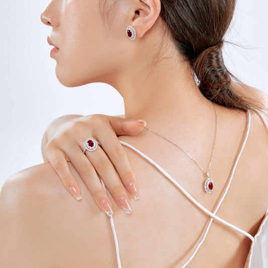 Jewelry Set | 5A Zircon | 925 Sterling Silver | Ruby Color