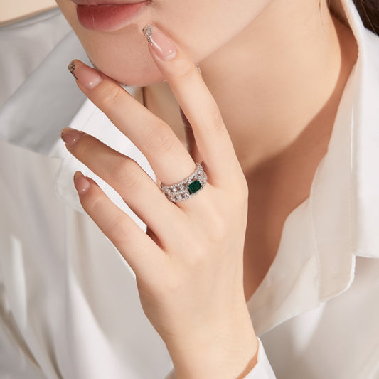1.0 CT Ring 5A Cubic Zirconia | 925 Sterling Silver | Emerald Green | 0162