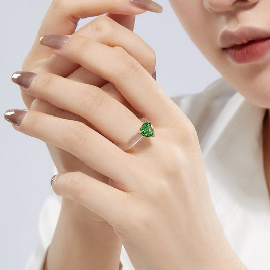 8A Zircon Candy Ring | 925 Sterling Silver | Green Heart | Crystal