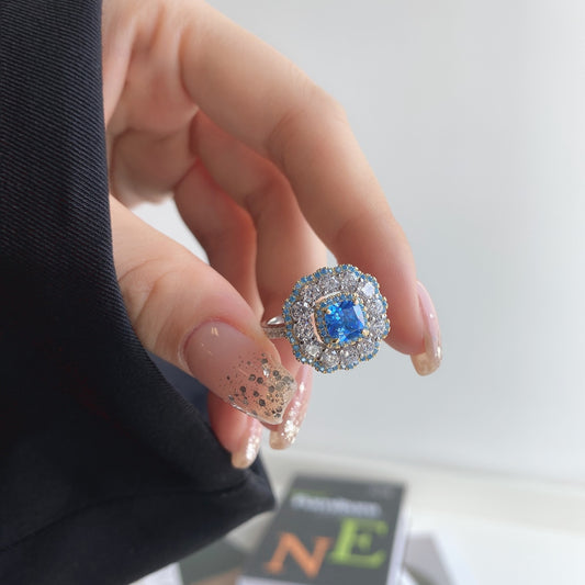 5A Cubic Zirconia | 925 Sterling Silver | Vintage Blue Flower Ring | 0946