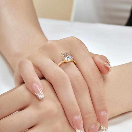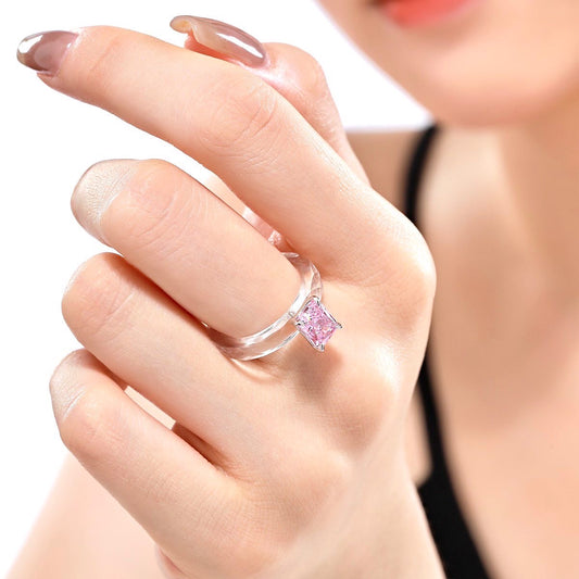 Square Candy Crystal Setting S925 Wedding Ring Birthday Ring