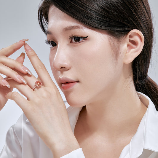 8A Zircon Ring | 925 Sterling Silver | Fanta Rose Gold Rectangle