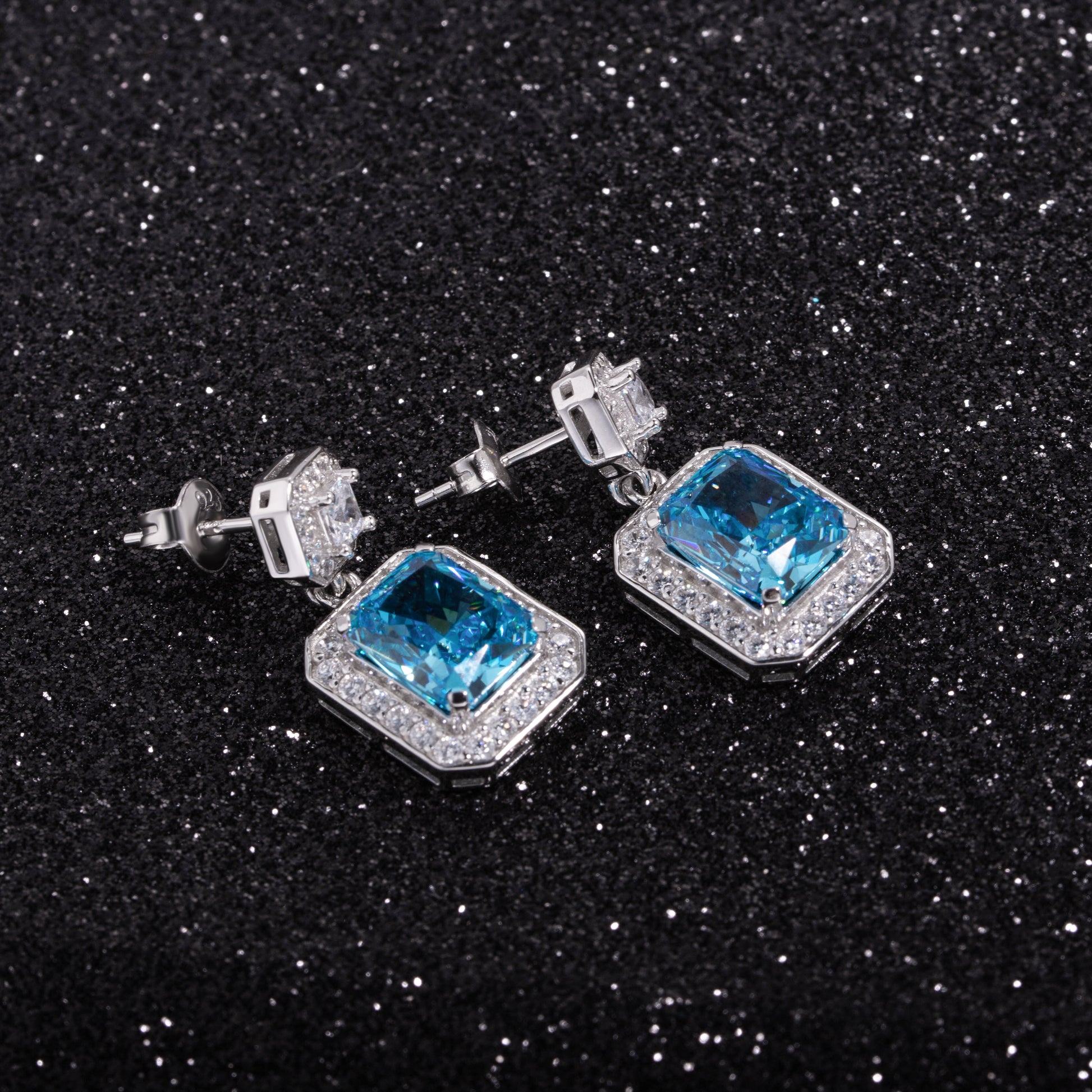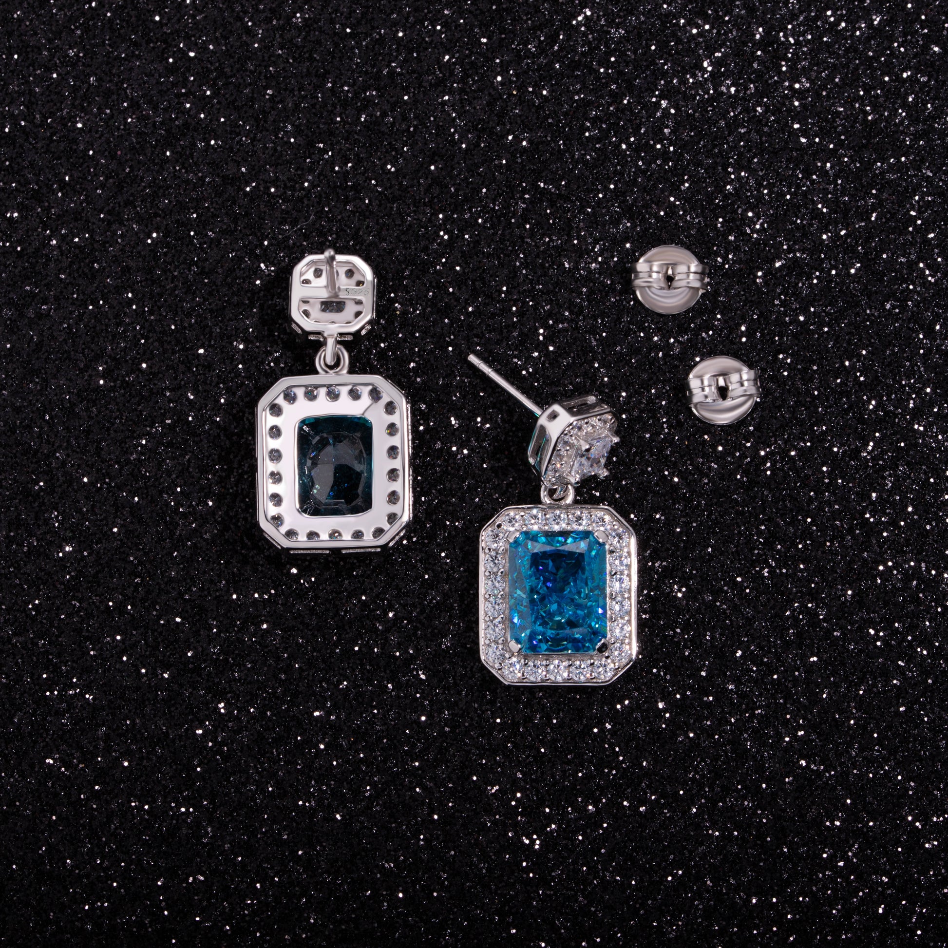 Radiant Cutting Blue Zircon Earring in Sterling Silver