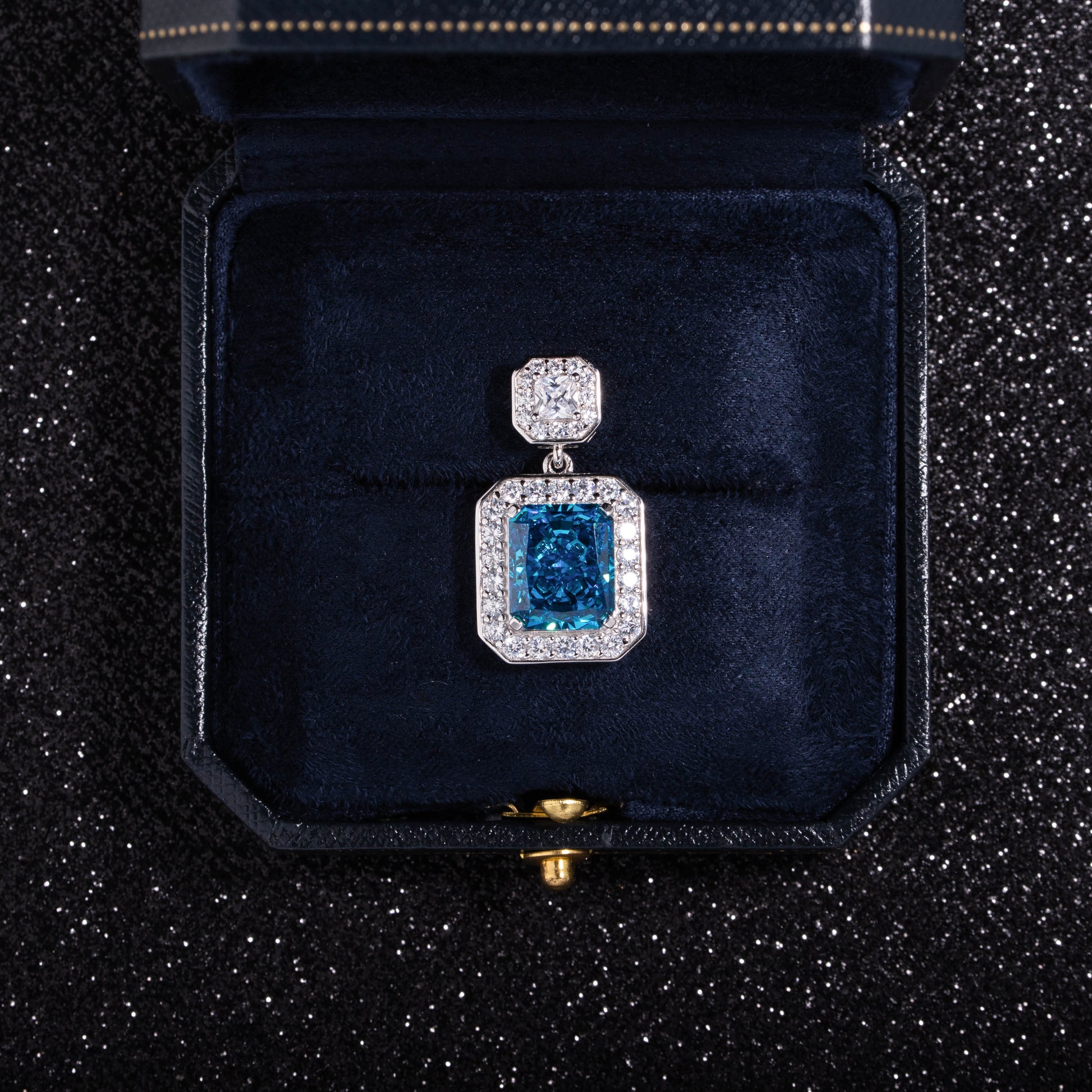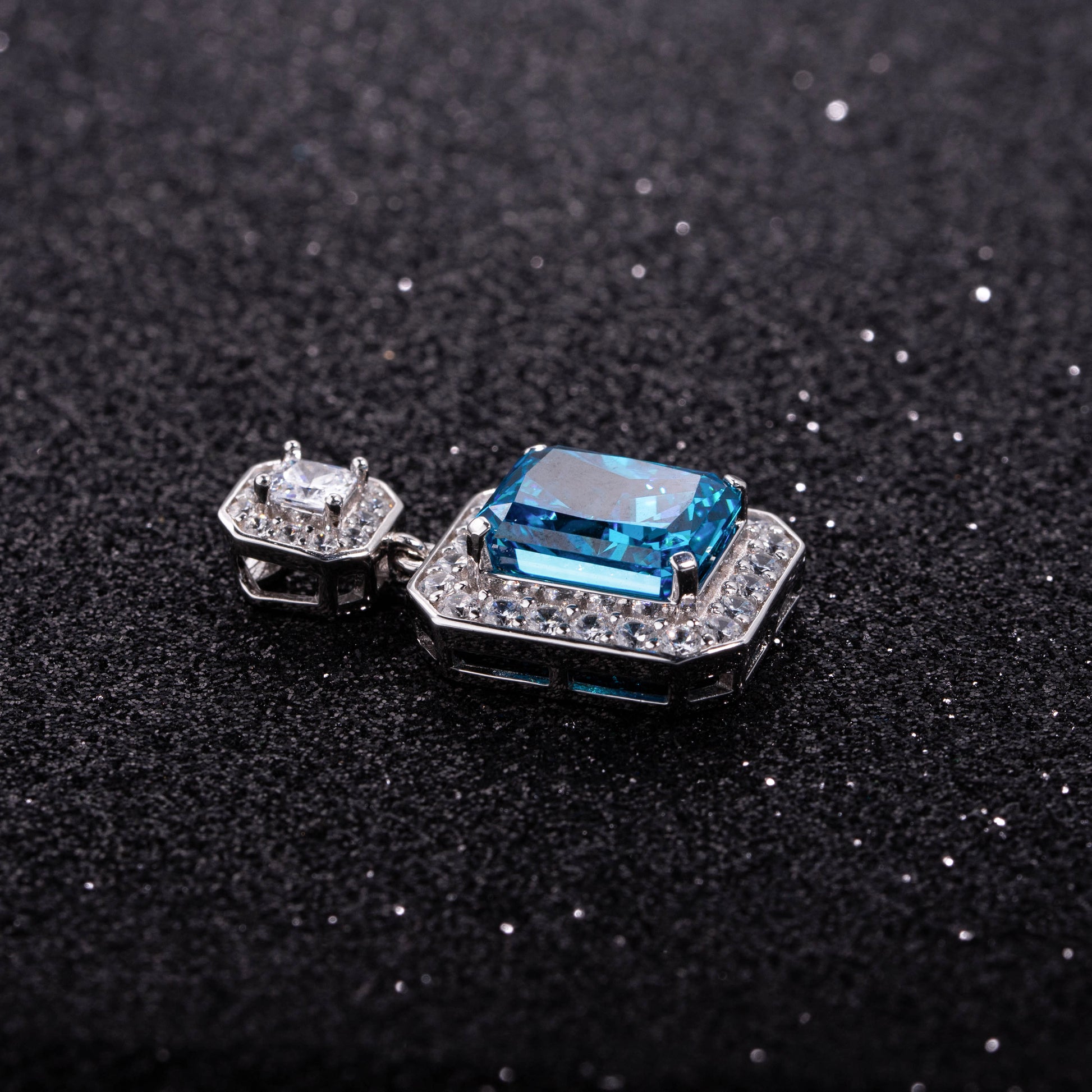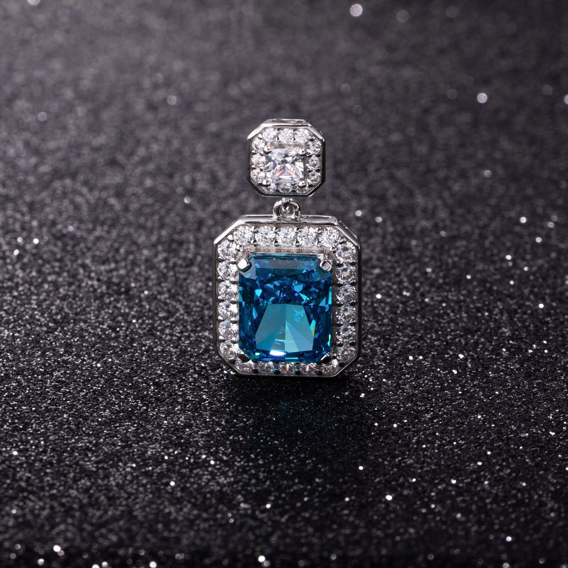 Radiant Cut Blue Cubic Zirconia Pedant in Sterling Silver