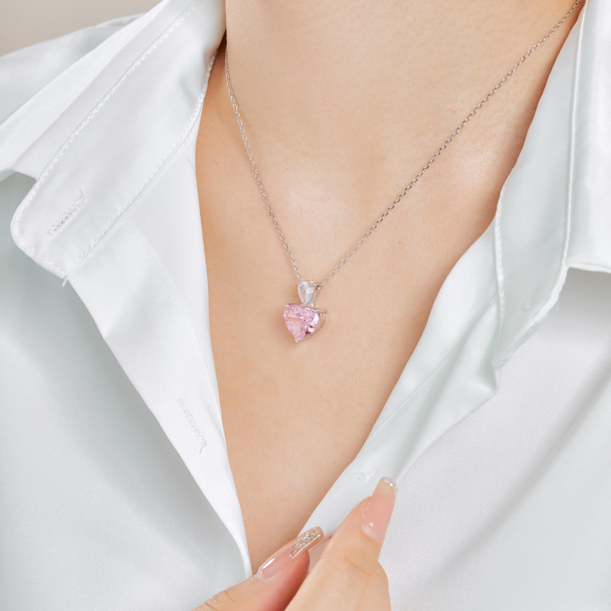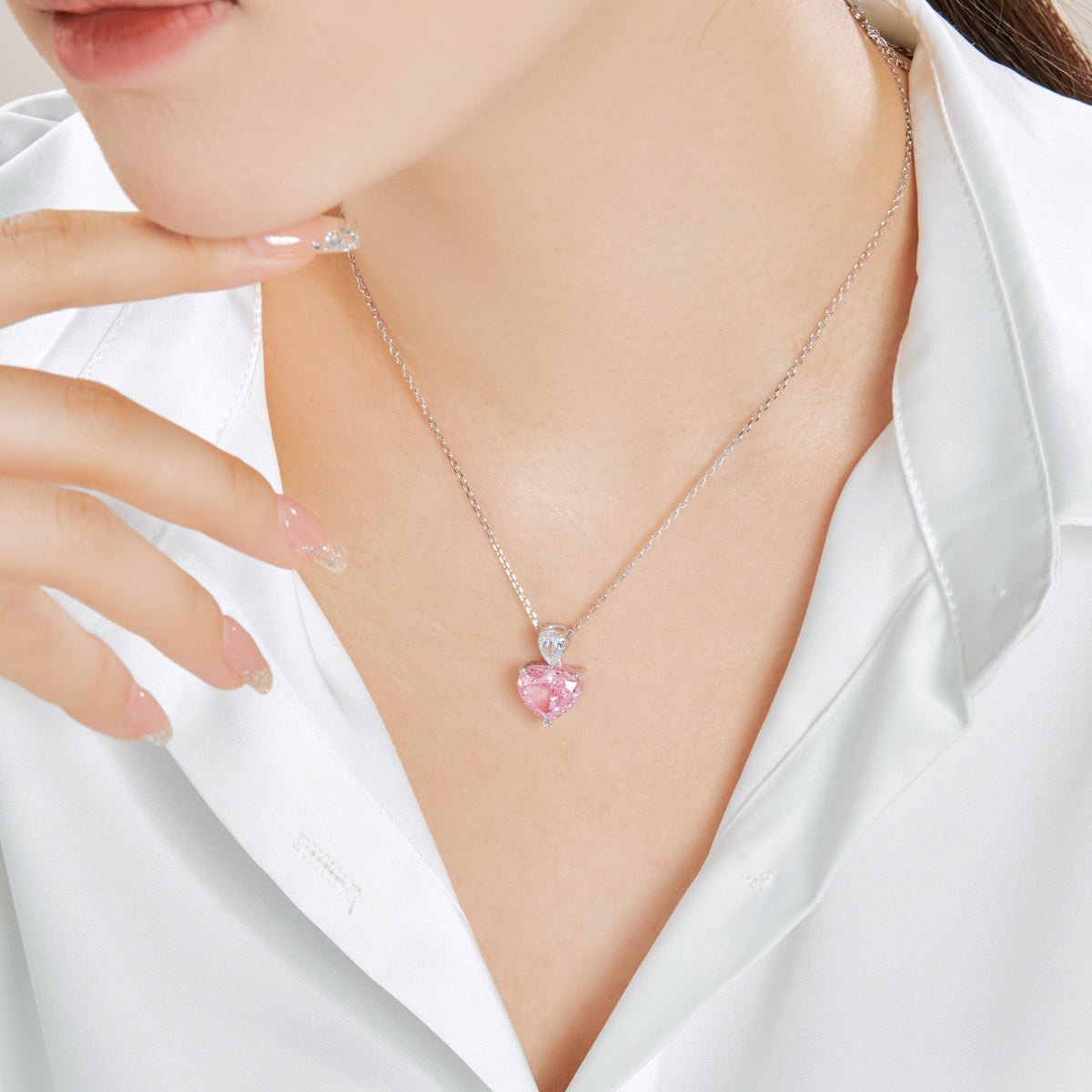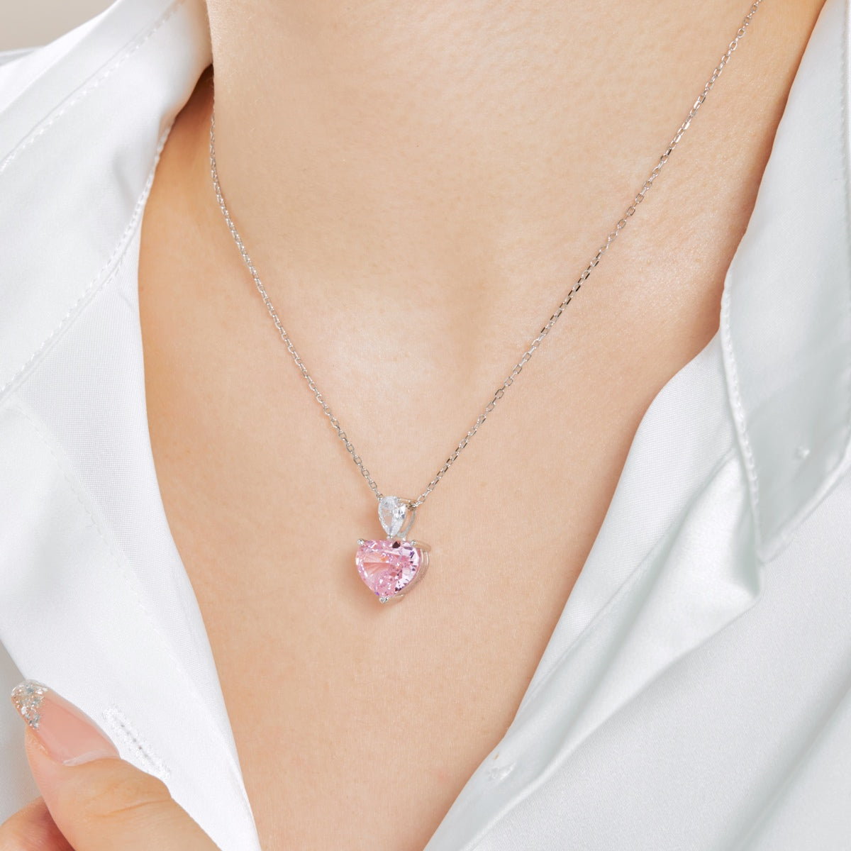 8A Zircon Necklace | 925 Sterling Silver | Pink Heart