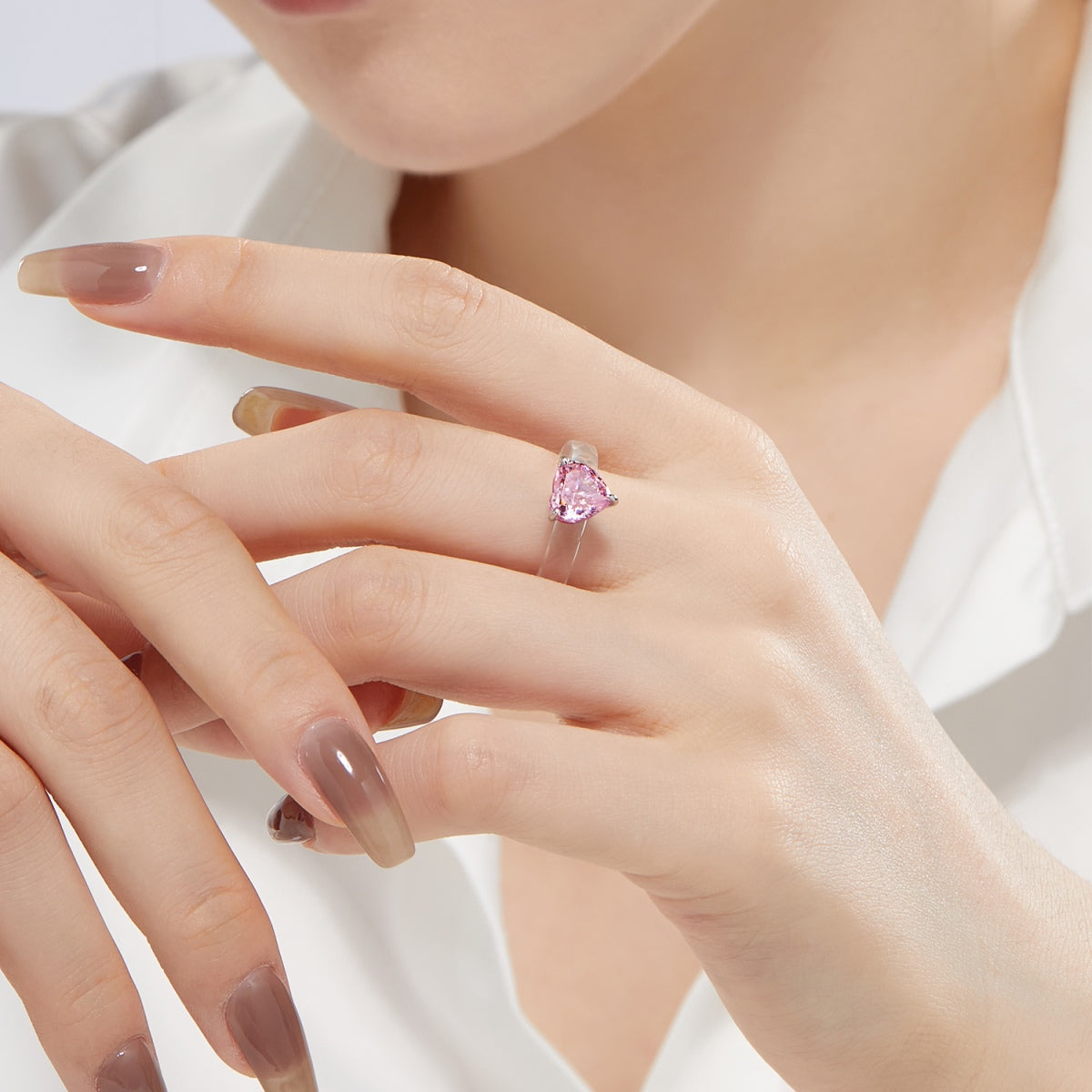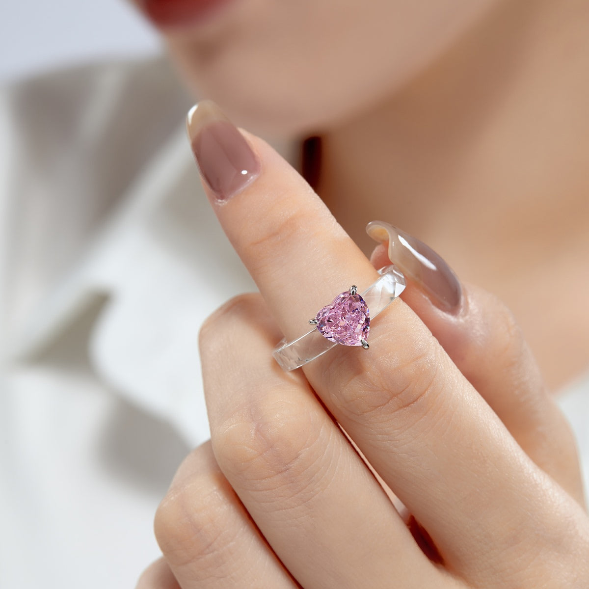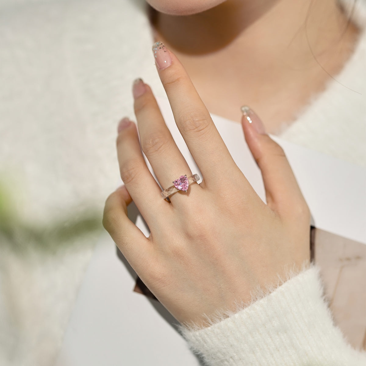 8A Zircon Candy Ring | 925 Sterling Silver | Pink Heart | Crystal